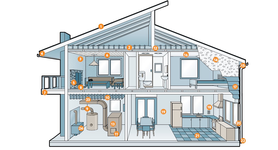 Until the early 1980s, many products containing asbestos were used in house construction. Some products, such as asbestos containing vermiculite insulation, were used in homes right up until the late 1980s. The drawing in this pamphlet shows many possible sources of asbestos in older homes. When you are renovating or demolishing an older house, there is a high probability of encountering asbestos-containing materials. If asbestos-containing materials are in good condition and left intact, they do not pose a significant danger of releasing asbestos fibres into the air you breathe. However, these materials are hazardous when they deteriorate or are disturbed, such as when they are handled, sanded, drilled into, or broken up so that they crumble. To avoid disturbing asbestos-containing materials, you must know where they are before you begin renovations. We can give you the assistance you need to get rid of this hazardous substance without endangering your health if you are starting a demolition or building project that involves it. We can oversee your project to neutralize the danger. We help identify and neutralize the danger before you start.
